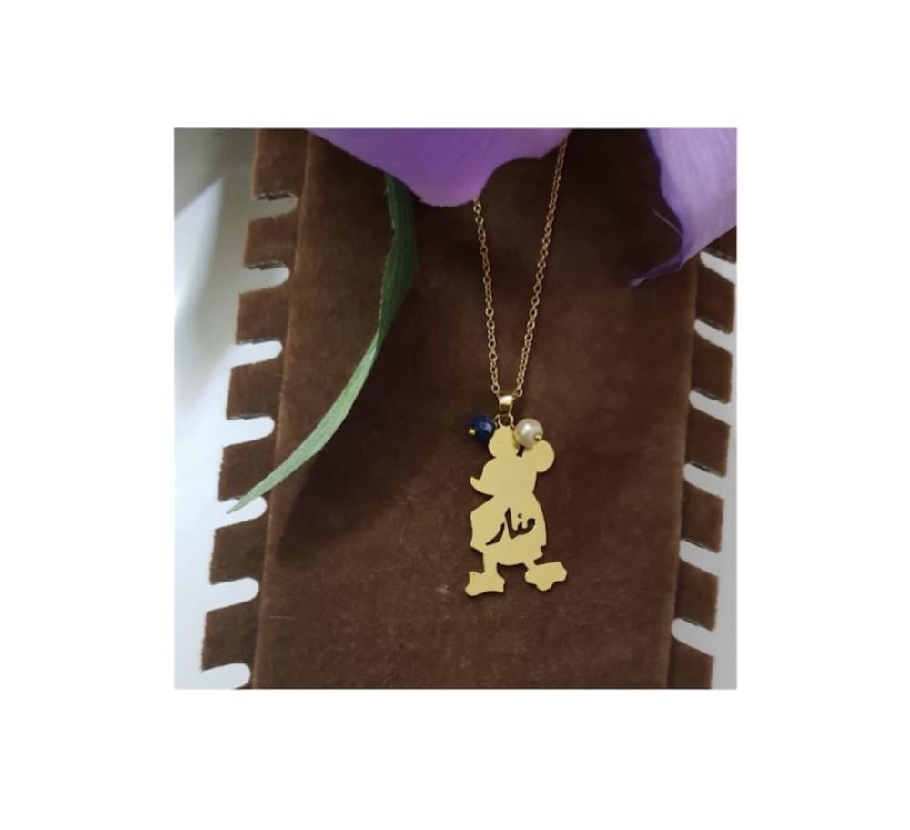- لذلك جئنا إليكم عملائنا الكرام بهذا المنتج "سلسال ميني ماوس" مطلي باللون الذهبي الناصع، خفيف وقوي يحمل اسم طفلتك, مع حرية اختيار اللغة، في تناسق بديع مع سلسلة رفيعة, كي تظهر بشكل أرق وأجمل في جميع المناسبات.