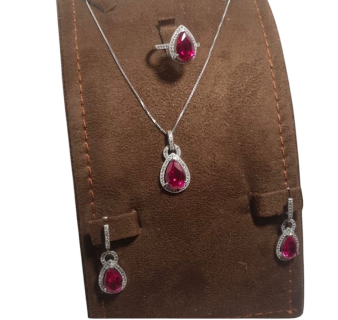 استمتعي بفخامة طقم فضة المزين بياقوت زركون الشبيه بالألماس. يُعتبر هذا الطقم العصري خيارًا مثاليًا كهديه عيد ميلاد، حيث يجمع بين التصميم الأنيق والجودة العالية، مما يجعله مناسبًا لكل إطلالة ويعكس أناقة كل امرأة.